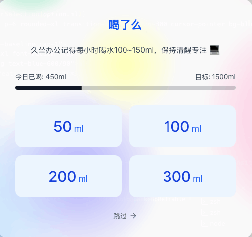 全屏展示的提醒喝水的软件!。