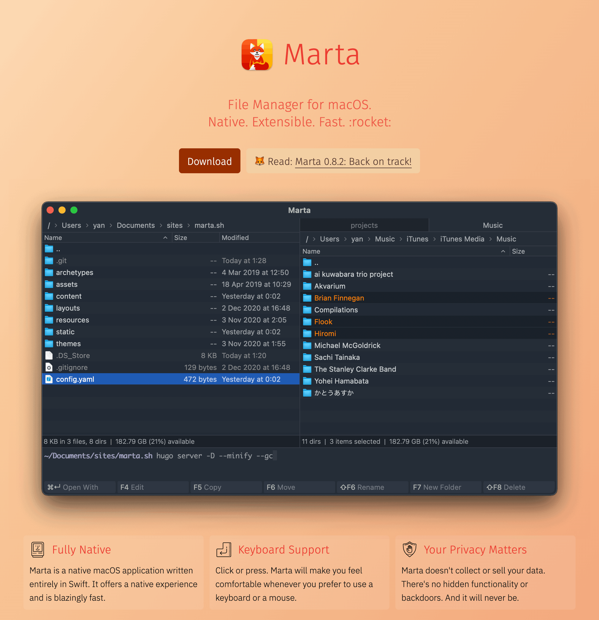 文件管理软件,可以拿来替代系统默认的 Finder。支持双栏展示,移动和整理文件的时候也比较方便。